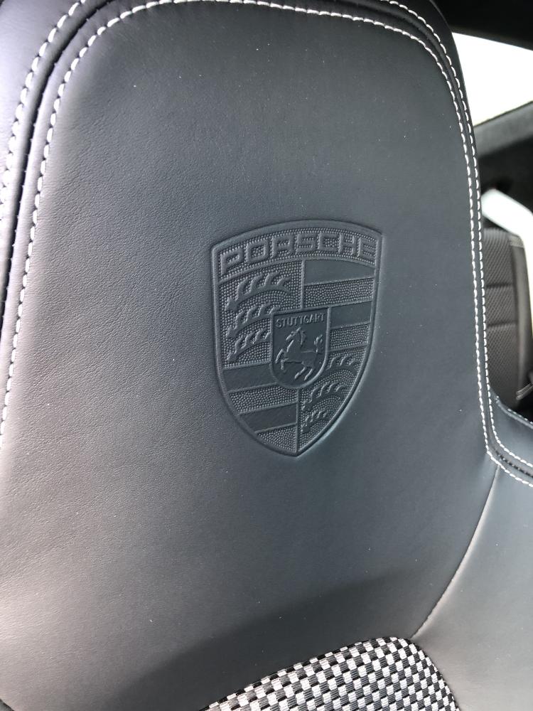 Znak Porsche na předních opěrkách hlavy