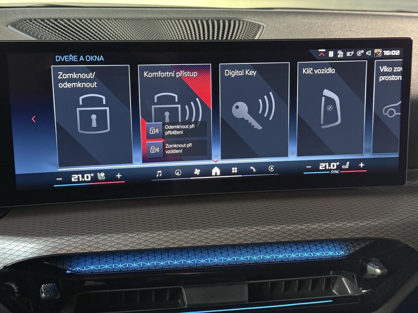 Komfortní přístupový systém odemykání a startování vozu